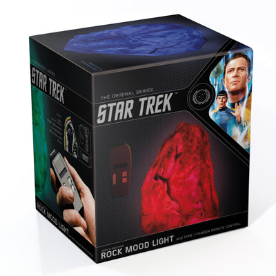 Il "Star Trek Rock", lampada a infrarossi controllata da un phaser ti permette di rivivere le tue esperienze sul pianeta Alfa 177, ma senza rischiare di morire di freddo. Questa replica dettagliata e dipinta a mano di una roccia del pianeta in questione nasconde una luce che cambia colore e che può essere controllata con un telecomando phaser. Oltre al classico "modalità "Sopravvivenzain cui la pietra può essere "riscaldata", la luce dispone anche di una modalità "modalità "Atmosferache include una funzione di cambio colore e una modalità di sospensione che oscura lentamente la luce per un periodo di 10 minuti.