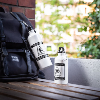 • Borraccia in alluminio con cartello di avvertimento DHMO
