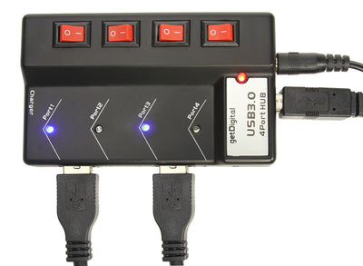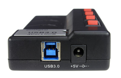 La nostra nuova generazione (la versione USB 2.0 con 7 porte può essere trovata qui) offre la stessa praticità della vecchia versione, ma è molto più veloce e potente grazie all'USB 3.0. I dati vengono trasferiti fino a 5 gigabit al secondo: con un film da 25 GB in HD, questo significa un tempo di trasferimento di circa 4 minuti invece dei precedenti 14 minuti con l'USB 2.0.