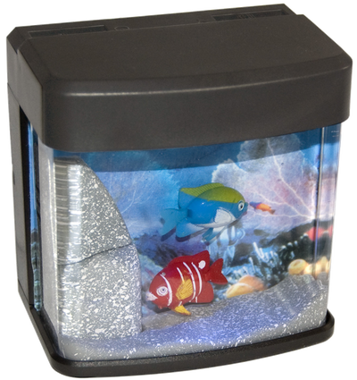 I pesci si muovono costantemente avanti e indietro, spinti da forze magnetiche. L'acquario USB è dotato anche di un LED blu che può illuminare l'azione.