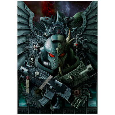 Sul Puzzle di Warhammer 40.000 da 500 pezzi, troverai un esempio degli straordinari Primaris Marines con numerosi dettagli e l'aquila imperiale a due teste sullo sfondo. Ma il guerriero ha due facce: A sinistra in pieno splendore, il fucile a otturatore ornato di sigilli di purezza, a destra corrotto dal Caos, segnato da decadenza, corruzione, mutazione. L'aquila a sinistra, la stella del Caos a destra. La lamina metallica rossa e l'effetto fosforescente sono un dettaglio interessante. Questo motivo dettagliato è così bello che viene incluso nel puzzle anche come poster.