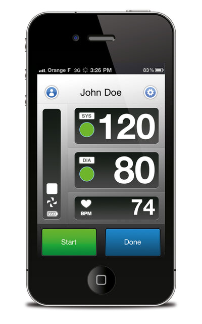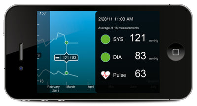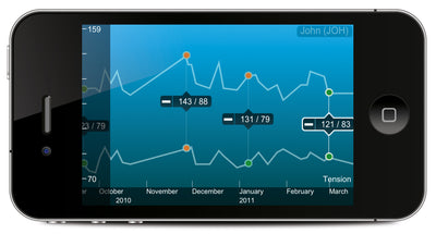 Il dispositivo iOS viene collegato al misuratore di pressione per la misurazione e viene poi utilizzato non solo per memorizzare i dati, ma anche per far funzionare il misuratore.