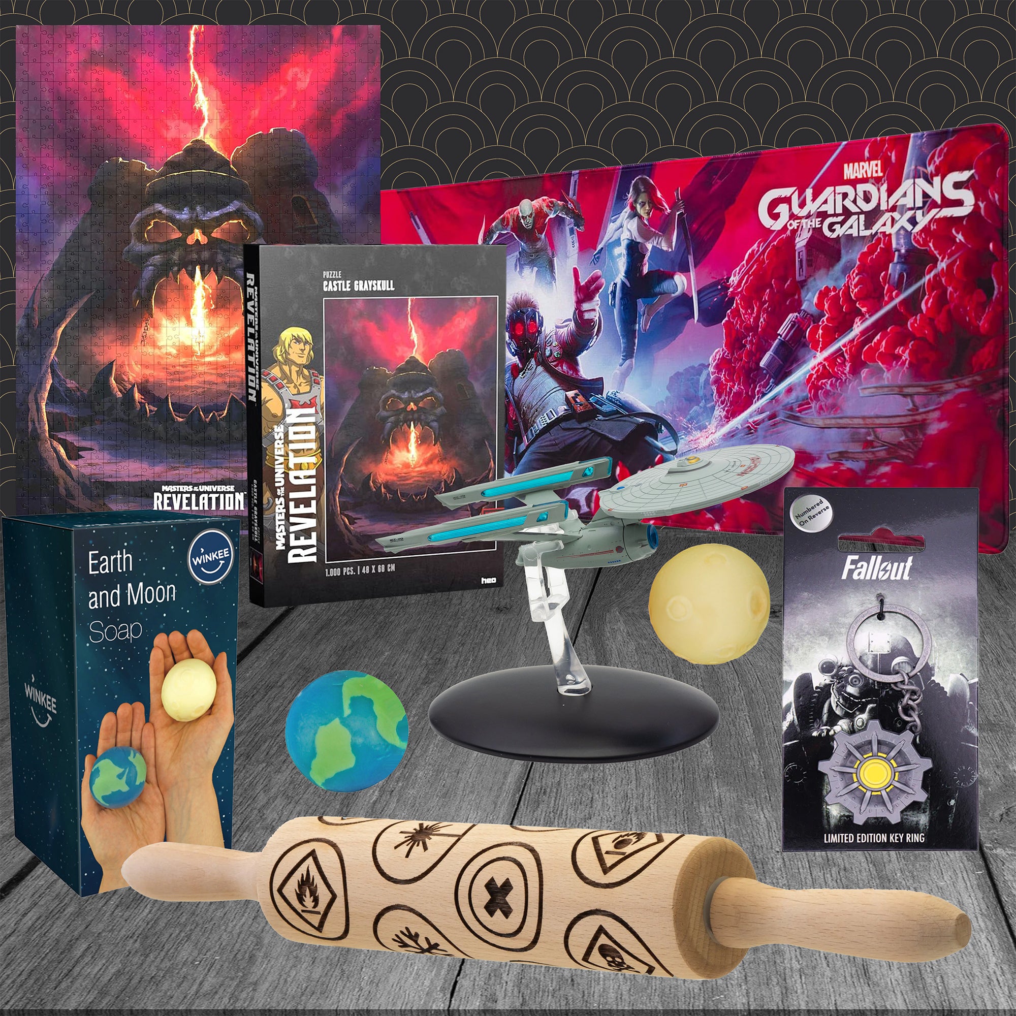 Tutte e tre le scatole a sorpresa contengono articoli nuovi provenienti da tutto il nostro negozio o dagli anni precedenti. Lootbox. Può essere qualsiasi cosa. Figure, gadget, articoli per la casa, merchandising, cuscini, fumetti, tutto. Ovviamente non vogliamo rivelare esattamente quali siano questi articoli.