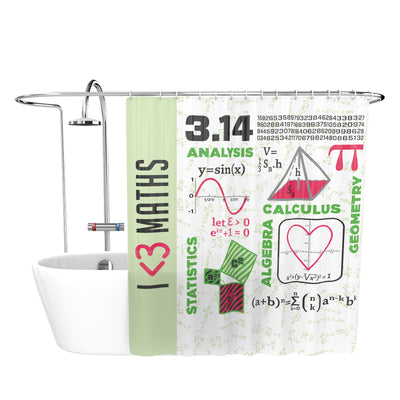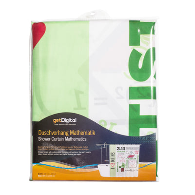 Dieser nerdige Duschvorhang wird sowohl Mathe-Fans begeistern, als auch Novizen langsam und sicher an die Mat(h)erie heranführen. Auf Deinem neuen Lieblingsstück kannst Du alles finden, was Mathe so wunderbar macht: Klassiker wie der Satz des Pythagoras, Sinuskurven, eine Herz-Formel und viele andere Elemente der Mathematik verwandeln Deine morgendliche Dusche in eine Reise ins Land der Zahlen und Variablen. Und falls Du Dich langweilst, kannst Du jeden Morgen ein paar zusätzliche Stellen der Kreiszahl Pi auswendig lernen... :)