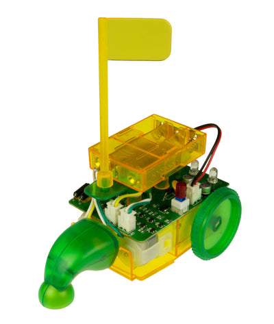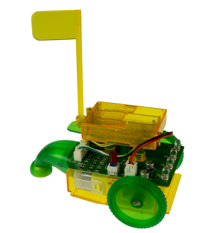 The Shake Shake Robot on the other hand, with its trailer look and a length of 12 cm, is the most inconspicuous representative of the robot family at first glance, but possibly also the most interesting. Its path is programmed by first shaking the Shake Shake Robot. Each type of shake corresponds to a specific movement. The Shake Shake Robot can store up to 15 commands, so nothing stands in the way of complex maneuvers. It is the best choice for small competitions or even mini golf.