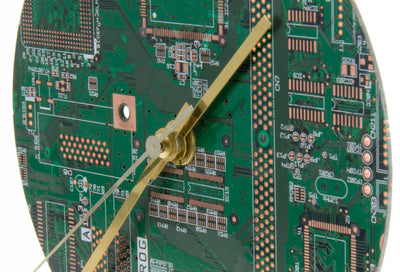 De printplaat-klok is een recyclingproduct. Het is gemaakt van printplaten die daadwerkelijk ooit in gebruik waren. Dit betekent dat elke klok een uniek stuk is!