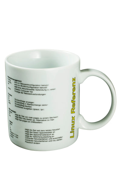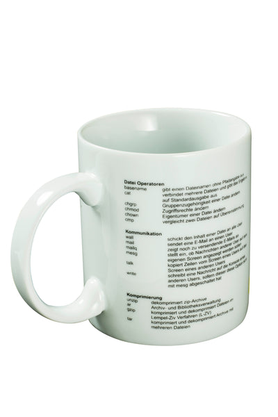 • Keramische mok met commando's en Duitse uitleg over Linux.