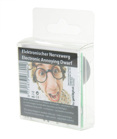De Nervegnome is een klein elektronisch apparaat dat op willekeurige momenten een opvallend geluid maakt. Het apparaat is zo klein dat het gemakkelijk en bijna onzichtbaar verborgen kan worden. Deze combinatie is perfect om je medemensen tot waanzin te drijven, want ze zullen eeuwig bezig zijn met het zoeken naar de bron van de geluiden.