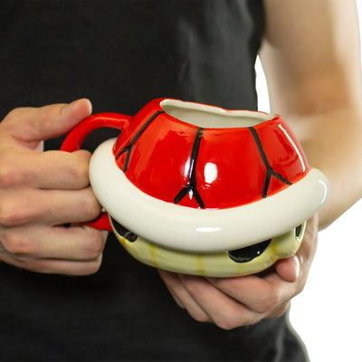 De Nintendo Super Mario Schildpaddenbeker is met zijn ongeveer 650 ml inhoud dus niet alleen een welkome, maar ook een volledig ongevaarlijke nieuwkomer op je ontbijttafel. En mocht Bowser en zijn handlangers plotseling de keuken binnenstormen, kun je de beker natuurlijk nog steeds als projectiel gebruiken. Maar drink de koffie dan wel eerst op... ;)
