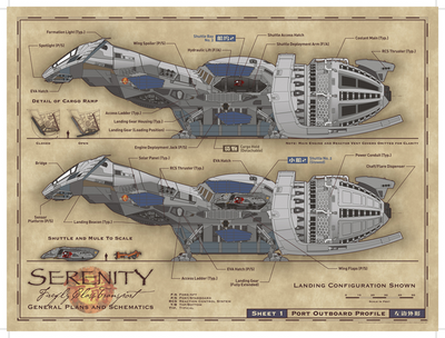- Een bouwplan van het vliegende transportmiddel de Serenity
