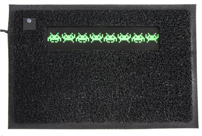 De op de deurmat afgebeelde Space Invaders lichten afwisselend op zodra een bezoeker de deurmat nadert. Voor dit doel beschikt de deurmat over een ingebouwde bewegingssensor. De stroomvoorziening wordt verzorgd door een batterijpak met 4 AAA-batterijen, dat is verbonden met de deurmat via een 40 cm lange kabel. De mat zelf is 40x65 cm groot en volledig van plastic. Omdat de mat niet waterdicht is, kan hij alleen binnenshuis worden gebruikt (bijvoorbeeld in het trappenhuis).