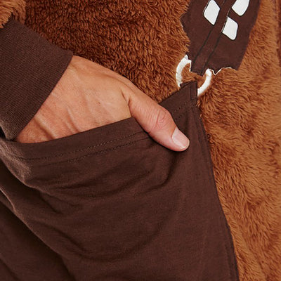 Much more authentic and also incredibly comfortable is the Star Wars jumpsuit Chewbacca comes along. This cuddly soft hooded jumpsuit will transform you into the secret favorite of many Star Wars fans in no time at all. In addition to the fur, for which no Wookies were harmed, the jumpsuit also impresses with its side pocket attached to the energy cell belt, in which you can stow snacks, the remote control or other useful items. So that you can easily get into the jumpsuit, there is a zipper on the front with an extra-large Star Wars puller that you could pull closed even with blue-frozen fingers on Hoth ;)