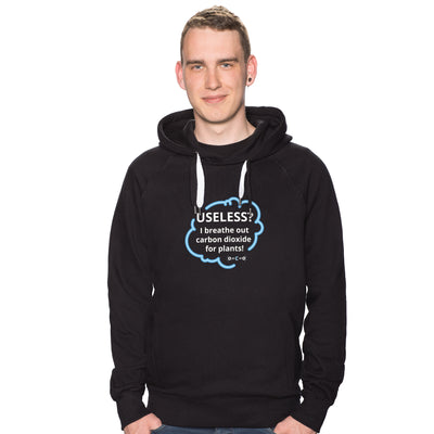Want zoals het Useless-Shirt heel terecht opmerkt, ademt elke mens onder andere CO2 uit. En dat hebben planten nodig om te overleven. We redden dus allemaal het regenwoud! En dat zonder een krat bier te kopen! Natuurlijk mag je niet vergeten dat de planten op hun beurt het CO2 omzetten in zuurstof, waardoor wij verder kunnen leven. Een perfecte win-winsituatie dus. En helemaal niet nutteloos!