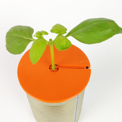 Das Set besteht aus einem Einsatz für Dosen, zwischen dessen zwei flexible Arme der Steckling geklemmt wird. Darüber kommt der Deckel, der dafür sorgt, dass die Dunkelheit liebenden Wurzeln optimale Bedingungen haben. Beide Teile wurden mit einem 3D-Drucker hergestellt und sind entweder rot oder orange. Außer dem Set, dem Steckling und der Dose brauchst du jetzt nur noch Wasser und etwas Geduld. Je nach Pflanze wachsen nach 7 bis 14 Tagen die ersten Wurzeln.