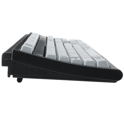 Thanks to the built-in steel plate, the keyboard is particularly stable and correspondingly heavy, so it doesn't slip away while typing. For perfect adjustment, the Buckling Spring Keyboard has two folding feet. It also has the typical status lights and a number pad. A new feature is the Windows key.
