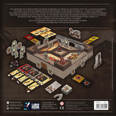 Seit Urzeiten haben die Minen von Runedar den Zwergen Reichtum beschert – doch die Zeiten des Wohlstands schienen vorbei. Bis jetzt! Denn eine kleine Gruppe Zwerge hat tief im Gestein eine neue Goldader entdeckt und sich bereits einen Schatz gesichert. Doch gerade als sie sich in Sicherheit bringen wollen, stellen sie fest: Die alte Festung von Runedar ist von Orcs umzingelt! In Die Schlacht von Runedar, einem kooperativen Brettspiel für 1-4 Spieler, müssen sie nicht nur die Festung verteidigen, sondern gleichzeitig einen Tunnel graben, um das Gold zu retten.