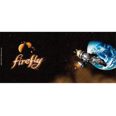 The space-western series Firefly was supposed to bring fresh air to the sci-fi landscape around Star Wars and Star Trek, but after only 11 episodes, the series was suddenly canceled in 2002. Some of us still haven't gotten over the loss, and that's why there's the Firefly mug for comfort! The mug is printed all around with a spacey background, featuring the Firefly series logo on one side and the Serenity spaceship on the other side.