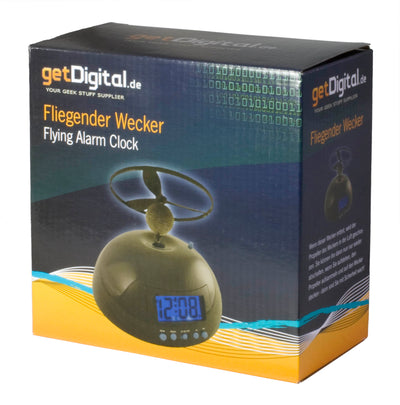 The Flying Alarm Clock has a propeller that flies into the air when the alarm sounds. The alarm can only be turned off again if you collect the propeller and put it back on the clock. Getting up is guaranteed :)