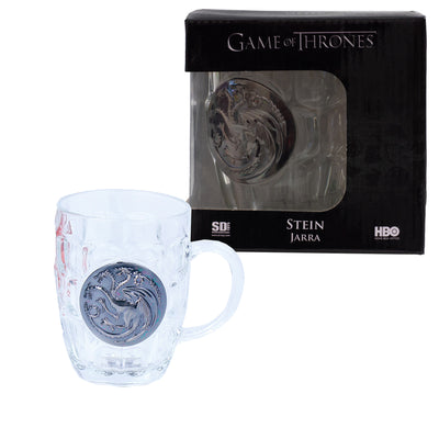 • Bierglas mit dem metallenen Wappen der Targaryens aus „Game of Thrones“