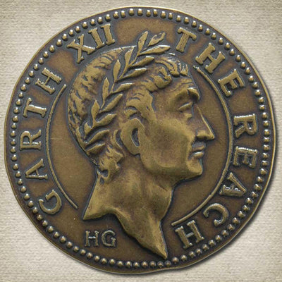 But long before Tyrion, Daenerys, and company roamed the seven kingdoms, the "Garth Gardener Hand" coin was already being used as currency in Westeros. This brass currency features the legendary King Garth Gardener, whose house met its end in the Battle of the Field of Fire against Aegon the Conqueror. This coin is now one of the oldest coins in all of Westeros!