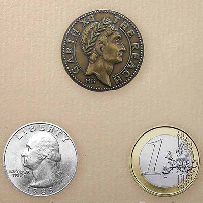 Each coin was produced on old machines using traditional methods and then given individual signs of wear ("Used Look") by hand. Thus, the coins look as if they have really been carried around Westeros for years! In addition to the coin, each set also includes a note with background information about the coin. So you are well equipped to play the game of thrones!