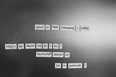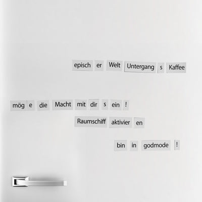 Fortunately, there is now the Geek Fridge Poetry Magnets. The poetry in the name should not cause too much confusion here - the more than 500 magnets with words, signs and symbols from the life hemisphere of a geek are not only suitable for writing poetry, but also prose ;) Whatever you want to tell your roommates, your family or your boyfriend/girlfriend, you can now use the geek magnets instead of banal, irrelevant post-its.