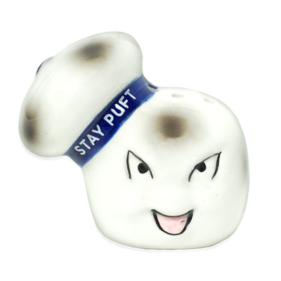 The Ghostbusters Stay Puft Salt and Pepper Shakers are modeled after the head of the marshmallow monster complete with sailor cap. So that you can tell your spices apart, one shaker shows the 'normal' version of the mascot, and the other the singed and demon Gozer-possessed version. Well then, bon appétit – and keep your proton beam ready just in case. ;)