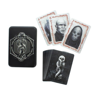 The Harry Potter Playing Cards "Dark Arts" fit Voldemort like red hair fits the Weasleys, as their name suggests: The 52 playing cards and the 2 Jokers feature, among other things, Harry's noseless adversary, Death Eaters, or - quite classically - skulls. The set comes in an embossed metal tin adorned with the Dark Mark. But beware before you start: The Death Eaters' masks are the ultimate poker faces. ;)