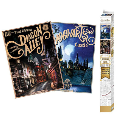 Die beiden zauberhaften Poster werden zusammen als Set geliefert, d.h. du bekommst beide Motive auf einmal. Das ist auch gut so, denn die Wahl zwischen der bunten Winkelgasse und dem altehrwürdigen Hogwarts-Schloss wäre dir sicher schwer gefallen. ;) Beide Poster sind mit dem jeweiligen Ortsnamen im britischen Retro-Schriftstil verziert.