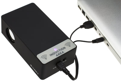 If you don't have batteries but do have a computer to hand, you can also operate the induction speaker via USB. Using a jack plug, it is also possible to connect your MP3 player, tablet, notebook and the like (in this case, however, the sound is not output via induction). The required cable is already included in the scope of delivery.
