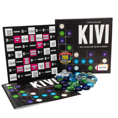 Das Kivi Würfelspiel ist ein kurzweiliges, lustiges Spiel, dessen Regeln schnell erklärt sind. Jeder Spieler hat 10 Spielsteine, mit denen er möglichst lange Reihen legen muss. Wer am Ende der 10 Runden die meisten Punkte hat, gewinnt. Ganz so einfach ist es aber doch nicht, denn wohin du deinen Kivi, also deinen Stein, setzten darfst, entscheiden die Würfel. Und natürlich können sich alle Mitspieler gegenseitig blockieren, um zu verhindern, dass jemand anderes als man selbst gewinnt.