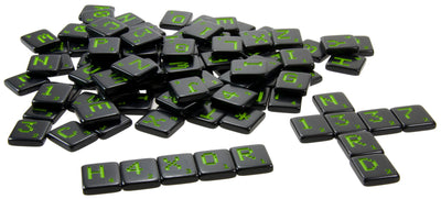With these game tiles (e.g., for Scrabble), letters and sounds that replace other letters in the online scene give more points. Instead of A (1 point), for example, just use 4 and get 2 points! A set contains 103 tiles, all in iconic green terminal font. Please note that you will need a Scrabble board (or a similar game) to play.