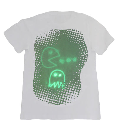 To capture the glow effect in the pictures (which is no easy feat), the light naturally had to be dimmed. The T-shirts therefore appear darker in the pictures than they are in reality. In daylight they are pure white, the print, on which you can write and draw, is rather light green to yellowish (as can be seen in the "blank" picture).