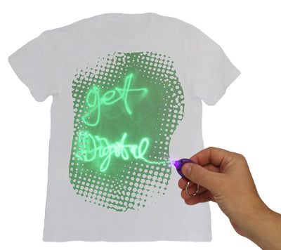 • Original Lazershirt that can be written on with UV light and glows in the dark.