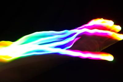 While creating the product photos, we also found that the LED Gloves are perfect for Light Painting, the "drawing" of figures with light on photos taken with a long exposure time (see the last additional image).