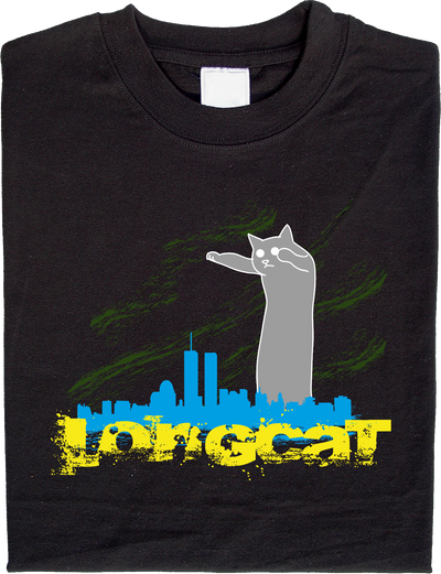 Now there is finally a cat shirt available for purchase. The design comes from the realm of lolcatz. It features the so-called Longcat, which is so long that it easily towers over all the skyscrapers in the world.