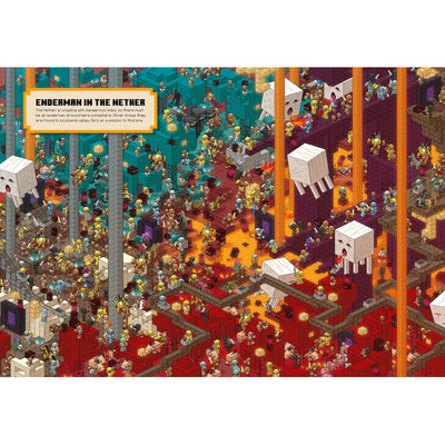 • Wimmelbuch with a Minecraft theme for searching and discovering; All pages are illustrated in the typical pixelated Minecraft style; On each page, besides the nasty Creeper and other mobs, there are also many small bonus items and details to discover; Language: English; Official licensed product