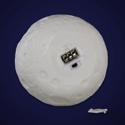 If you feel like having a new moon and darkness, simply switch off the light at the bottom. The required batteries (3 x LR44) are already included. Just like plenty of craters. :)
