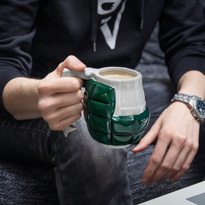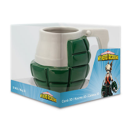The My Hero Academia 3D Mug "Bakugo" now lets you drink your beverages from one of Bakugo's Grenadier Bracers! Instead of explosive sweat, you should rather fill it with refreshing drinks and ideally not let Bakugo's fiery temper affect you. Since it would be unwise to heat a grenade, you should also avoid cleaning the mug in the dishwasher or heating it in the microwave.