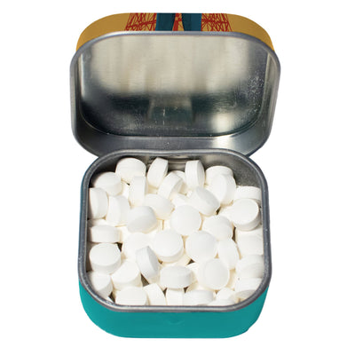 The "Nikola Tesla's Experimints" peppermint candies are fortunately not deadly, but instead ensure fresh breath and a wonderfully minty taste in the mouth. From the lid of the metal box, Tesla himself beams at you – perhaps "death ray" simply referred to his radiant smile? ;)