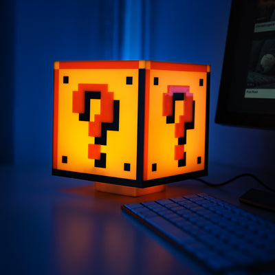 • Dekorative Lampe im Design eines Fragezeichenblocks aus Super Mario Bros.