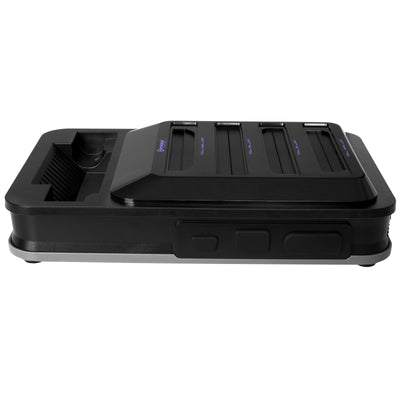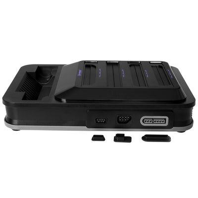 The RetroN 5 comes with a wireless Bluetooth controller in a retro design. But you don't have to play alone and you don't necessarily have to buy a second controller, because there are slots for original controllers, two for each platform, so six in total (2 x NES, 2 x SNES, 2 x Sega). The corresponding controller has a range of up to nine meters.