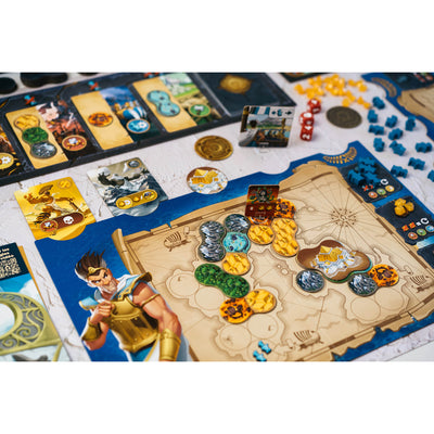 Zu Beginn jeder Runde wählst du ein Landschaftsplättchen und eine Aktionskarte. Das Plättchen legst du auf dein Inseltableau, um deine Insel zu erweitern. Mit der Aktionskarte kannst du Hopliten anwerben, das lgendäre Material Orichalkum abbauen, Kreaturen besiegen, Gebäude und Tempel errichten oder Orichalkum-Medaillen schmieden. Ziel des Spiels ist es, fünf Siegpunkte zu erreichen, indem du Medaillen, Tempel und die Hilfe der Titanen nutzt. Zusätzlich musst du alle Kreaturen auf der Insel besiegen. Wer dies zuerst schafft, gewinnt und sichert das Überleben der Atlantiden.