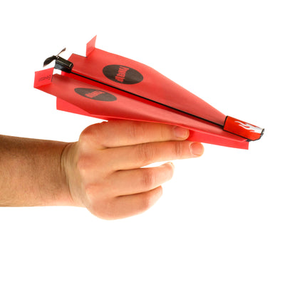 All set? Then just let your paper airplane fly. A good half minute it will stay in the air, no normal paper airplane can achieve that. How far it goes, of course, depends on the model, wind, and other influences. But with a little practice, you can cover decent distances. Once the propeller runs out of energy, simply recharge it with the mobile charging station.
