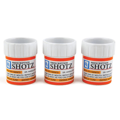 Nice enough Dr. Feelgood prescribed you and two other patients of your choice some booze - how much? Well, as much as you can handle. The exterior of these ceramic shot glasses is modeled on a typical pillbox, like the ones you get in American pharmacies and drugstores. All the fields on the "pillbox" are filled in with tongue-in-cheek information in English. The doctor advises against dishwasher treatment of the jars, but they are easy to clean. They also make an excellent gift for anyone who works in the pharmaceutical/medical field ;)