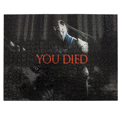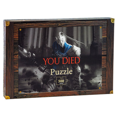 The Puzzle "You died" will be a great challenge for both veterans of the game and non-traumatized people. Before you get to see the infamous knight with the paralyzed arm from the game, you first have to put the 500 pieces together correctly. And believe us, it's not that easy. And watch out: The edge of the packaging reveals that the box is a mimic. So hands off! ;)