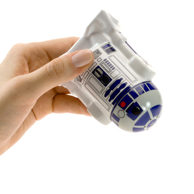 Ouch, alright! Like the originals, these two droids are made of high-quality material, in this case, porcelain. So they can be cleaned with water without any problems, just avoid a full wash because of the electronics... R2-D2 is intended for pure salt, R2-Q5 for dark pepper. That's why the black R2-Q5 also has a few more holes on the top. Both robots can be easily filled from the bottom, which is sealed with a rubber plug that is easy to remove. (Guaranteed no broken fingernails, nerves, family dinners.)