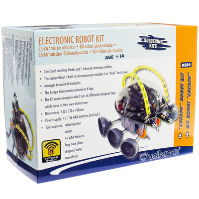 Please note that this is a kit. So you have to solder the robot yourself, but no electronics knowledge is required. However, you need to own a soldering iron and be able to handle it a little. Two different wheels are included, so there is also some variety.
