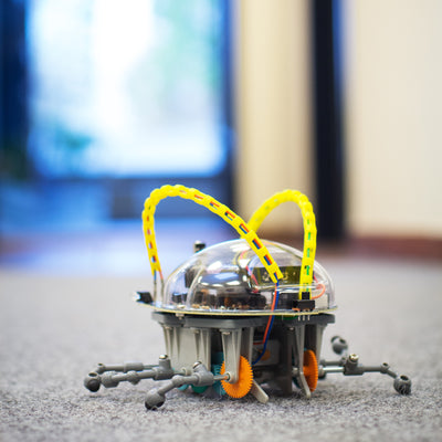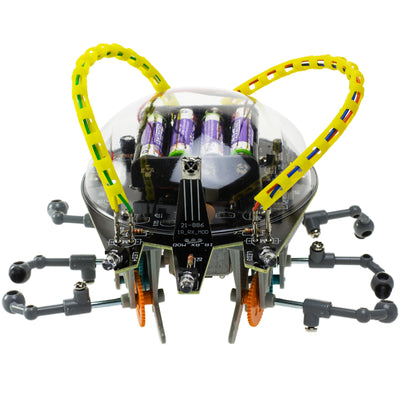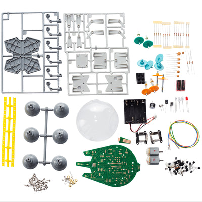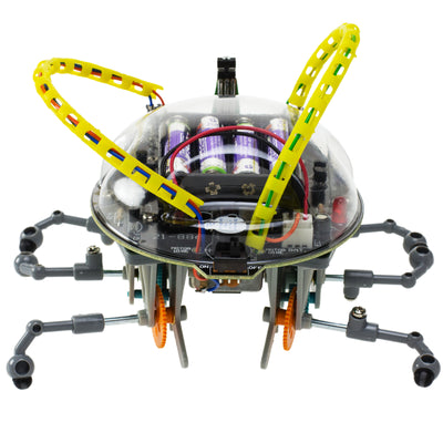With the robot kit, you can build a robot that can move using 6 wheels and independently detect obstacles. It uses three infrared transmitters and a receiver, which, with the help of the built-in microcontroller, allow it to scan the environment in front of it, detect obstacles, and avoid them.