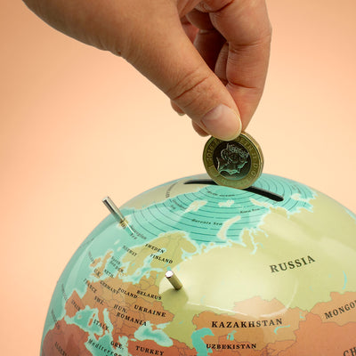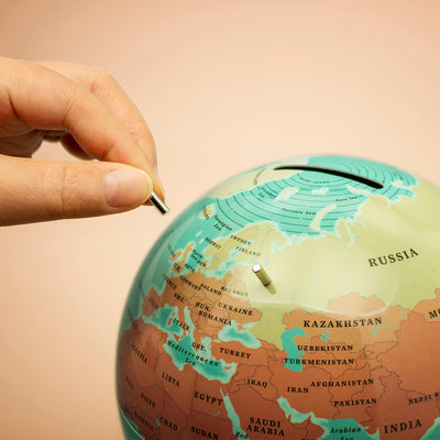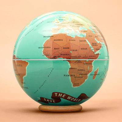 With the "Save the World" travel fund the penny-pinching (almost) goes by itself! This metal money box is based on a retro globe and can be easily filled with coins, bills and other small valuables via a slot on the top. So that you never forget why you put all your change aside, you can write your next travel destination on the globe with the included pen!